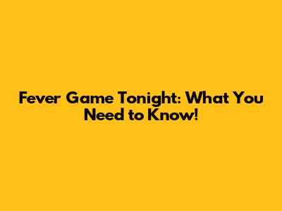 Fever Game Tonight: What You Need To Know!