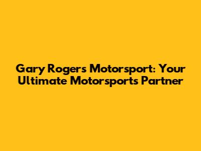 Gary Rogers Motorsport: Your Ultimate Motorsports Partner