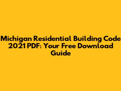 Michigan Residential Building Code 2021 PDF: Free Download
