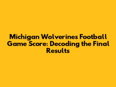 Hey guys, let's dive into the exciting world of college football and, more specifically, the Michigan Wolverines! If you're anything like me, you're always on the lookout for the final scores, especially after a thrilling game. So, what was the final score of the Michigan Wolverines football game? We're here to break it down and give you all the juicy details you need. Getting the final score is just the beginning; it often leads to a deeper dive into the game's highlights, the key players, and the overall season trajectory of the Wolverines. This information is crucial whether you're a die-hard fan, a casual follower, or someone just starting to get into the sport. Let's explore how to find this critical piece of information and what it means for fans like us.
