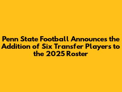 Penn State Football has made some exciting moves, guys! The Nittany Lions just announced the addition of six transfer players to their 2025 roster, and fans are buzzing. These new additions are set to bring fresh talent and depth to the team, bolstering their chances in the competitive world of college football. Transfers are becoming increasingly important in college football, and Penn State's strategic recruitment in this area shows their commitment to staying at the top of their game. With these new players on board, the Nittany Lions are looking to make a significant impact in the upcoming seasons. The coaching staff has clearly identified areas where the team needed reinforcement, and these transfers seem to be a perfect fit for those needs. It's not just about filling positions, though. These players bring experience and leadership qualities that can be invaluable both on and off the field. The blend of seasoned transfers with the existing talent pool creates a dynamic mix that could propel Penn State to new heights. We're talking about guys who have played at a high level, faced tough competition, and know what it takes to win. This kind of experience is something you just can't teach, and it's a huge asset for any team. As the landscape of college football continues to evolve, strategic use of the transfer portal is becoming a key component of success. Penn State's proactive approach in this area demonstrates a forward-thinking mindset and a dedication to building a championship-caliber team. The Nittany Lions are not just participating; they're competing, and they're doing it with a clear vision for the future. So, get ready, folks, because the 2025 season is shaping up to be an exciting one for Penn State football. The addition of these six transfers is just the beginning, and we can't wait to see what they bring to the field.